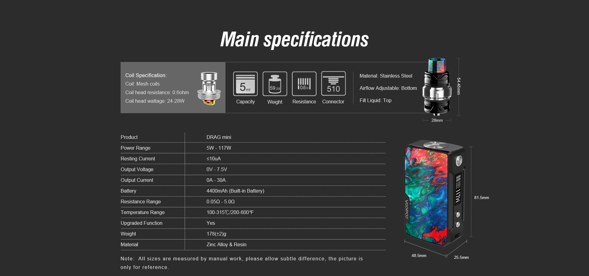 للحصول على تجربة محمولة أفضل ، يتميز DRAG mini ببنية مدمجة ومريح في التشكيل وقوي في عمر البطارية.