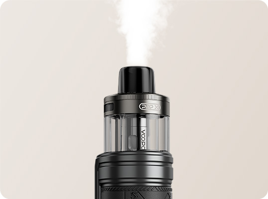 The distinctive top-airflow design effectively controls e-liquid and condensate