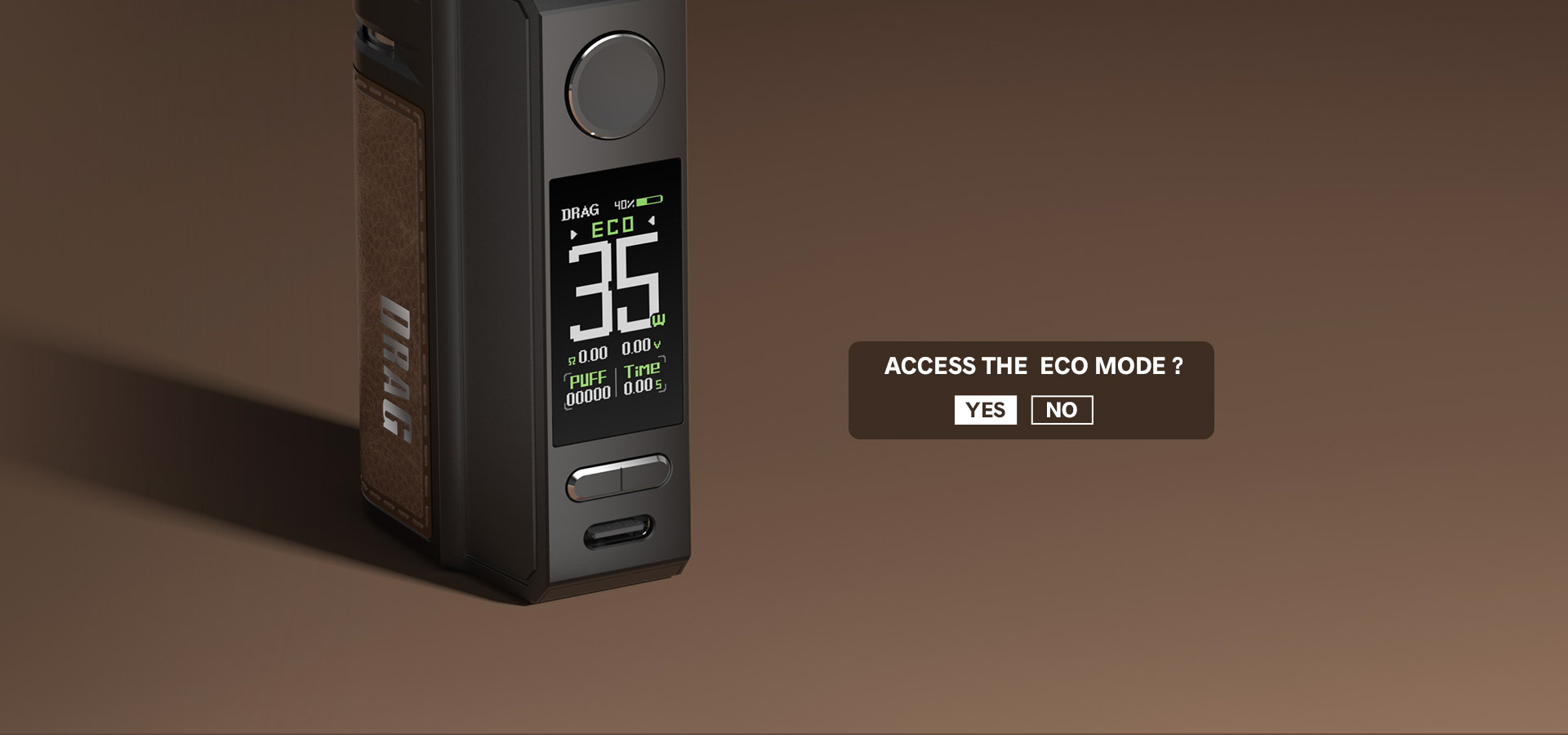 Activate the ECO mode to increase 10% more vaping puffs to meet the needs under low battery capacity.