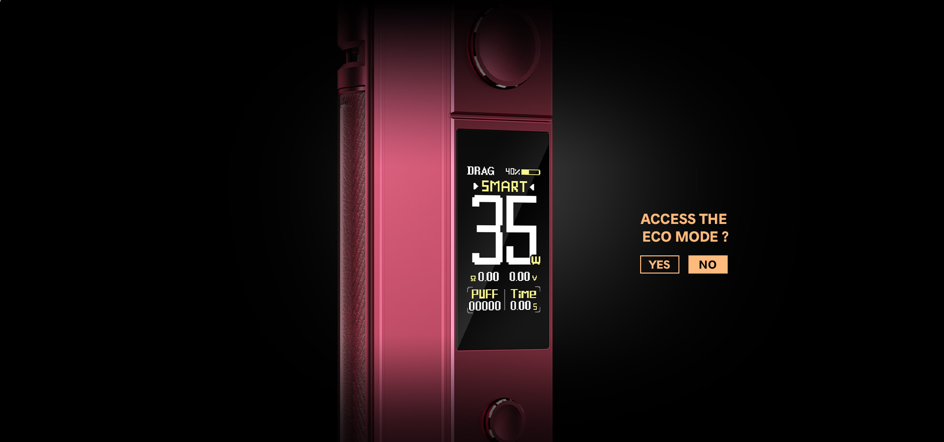 You can choose whether to enter the ECO mode at anytime. Keep vaping and stay cool.
