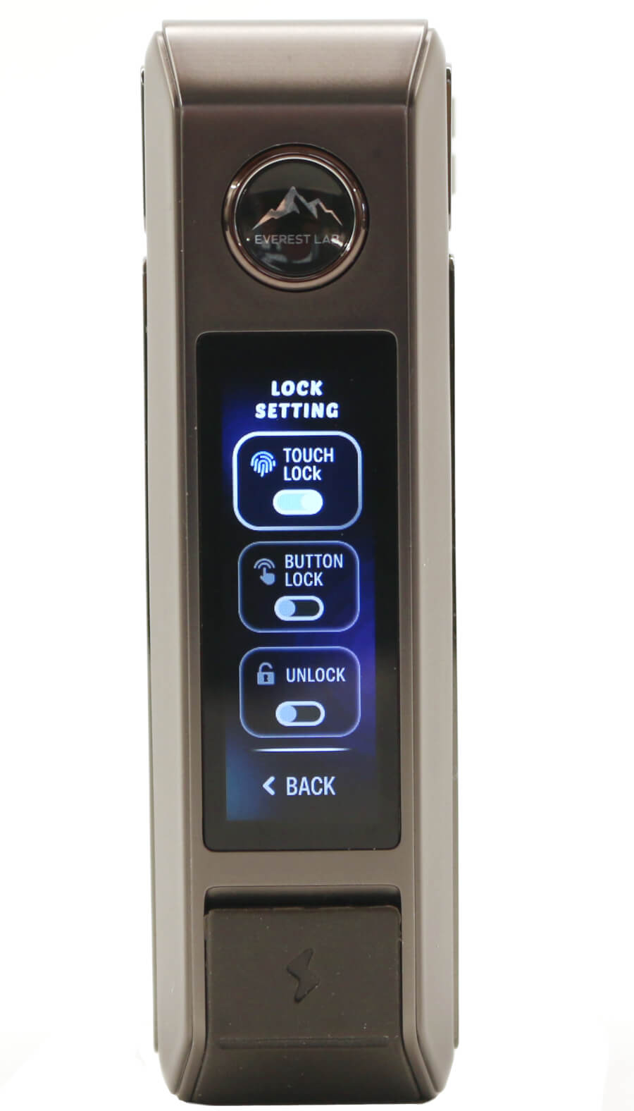 3 different options are available to lock/unlock the device and are selected from the LOCK SETTING menu. Use the rotary wheel to scroll through these options and with the one you want that's highlighted, press the fire button and that will be activated.