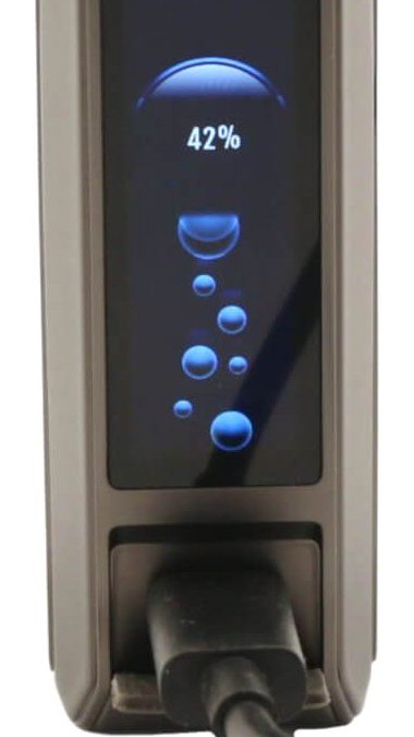 To see the charge status of your battery, you will have to press either the fire button or turn the rotary wheel on the DRAG 6 to bring up the display again but it will only remain visible for another 15 seconds. Full charge is reached when the display indicates 100%.