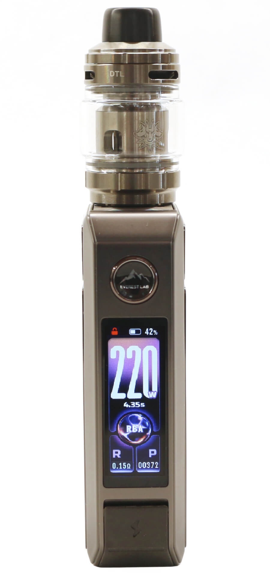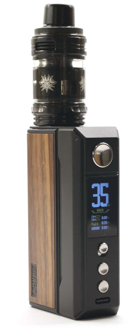 With increased power (220 W), a modernized larger 1.66 inch display, a rotary wheel replacing the up/down buttons and capacitive touch unlock, they've broken the mold of the earlier DRAG kits and it's now powered from an internal 4400 mAh capacity battery.