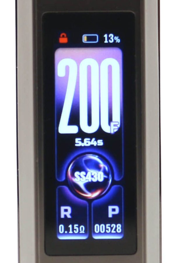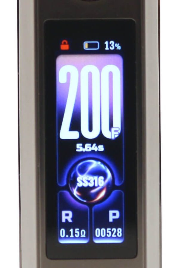 The DRAG 6 mod is a 5 W - 220 W variable power device with RBA and SMART modes and 4 TC-TCR temperature control modes (SS316, SS430, NI200 and TI). 3 different THEME settings are selectible and the ANIMATED graphic screen can be switched ON/OFF. There are also 3 different Lock/Unlock functions; BUTTON, TOUCH and UNLOCK.