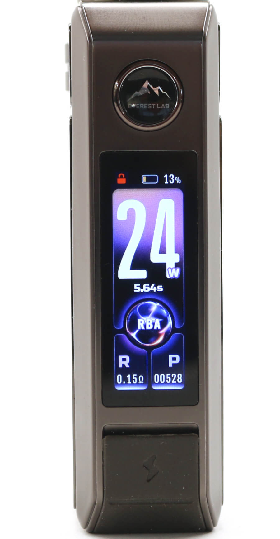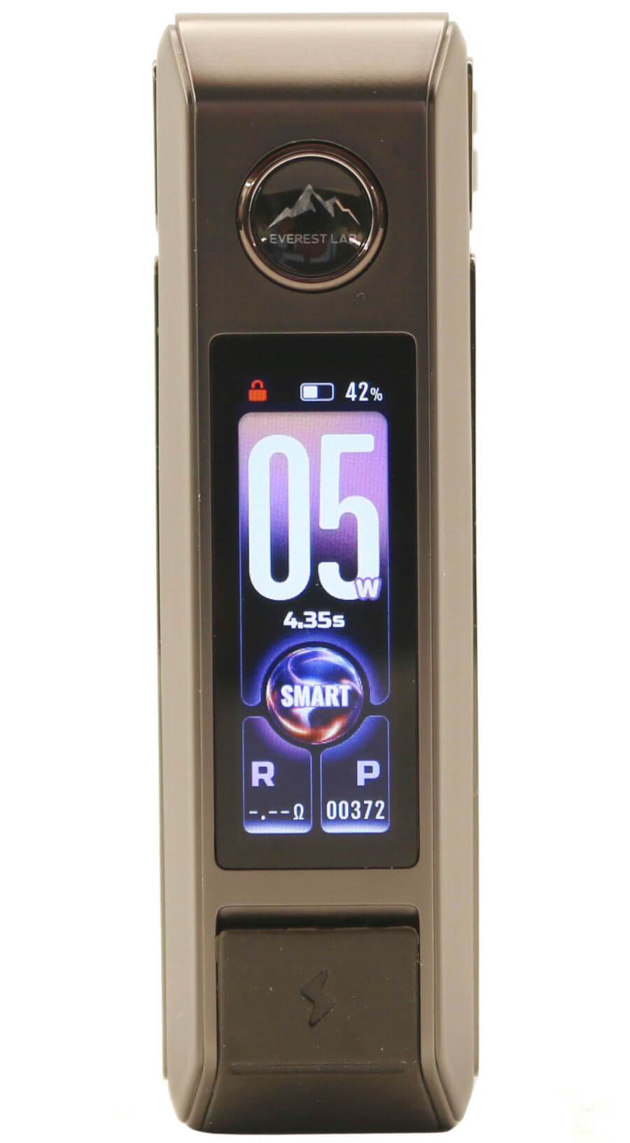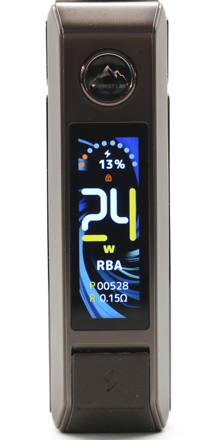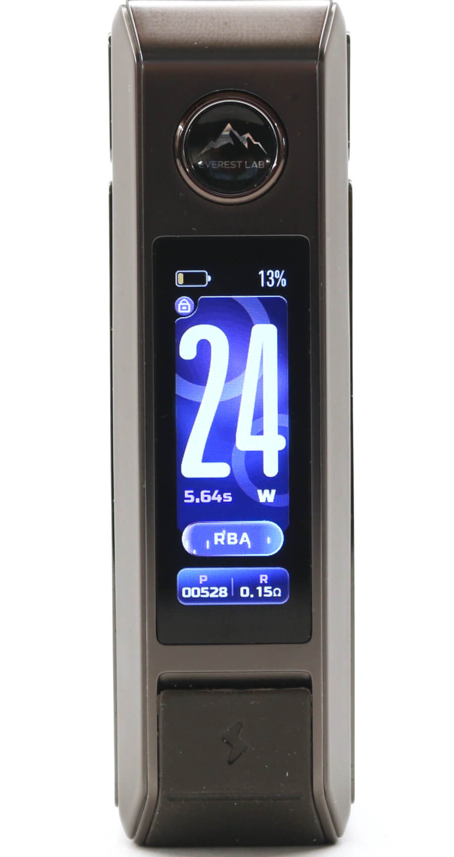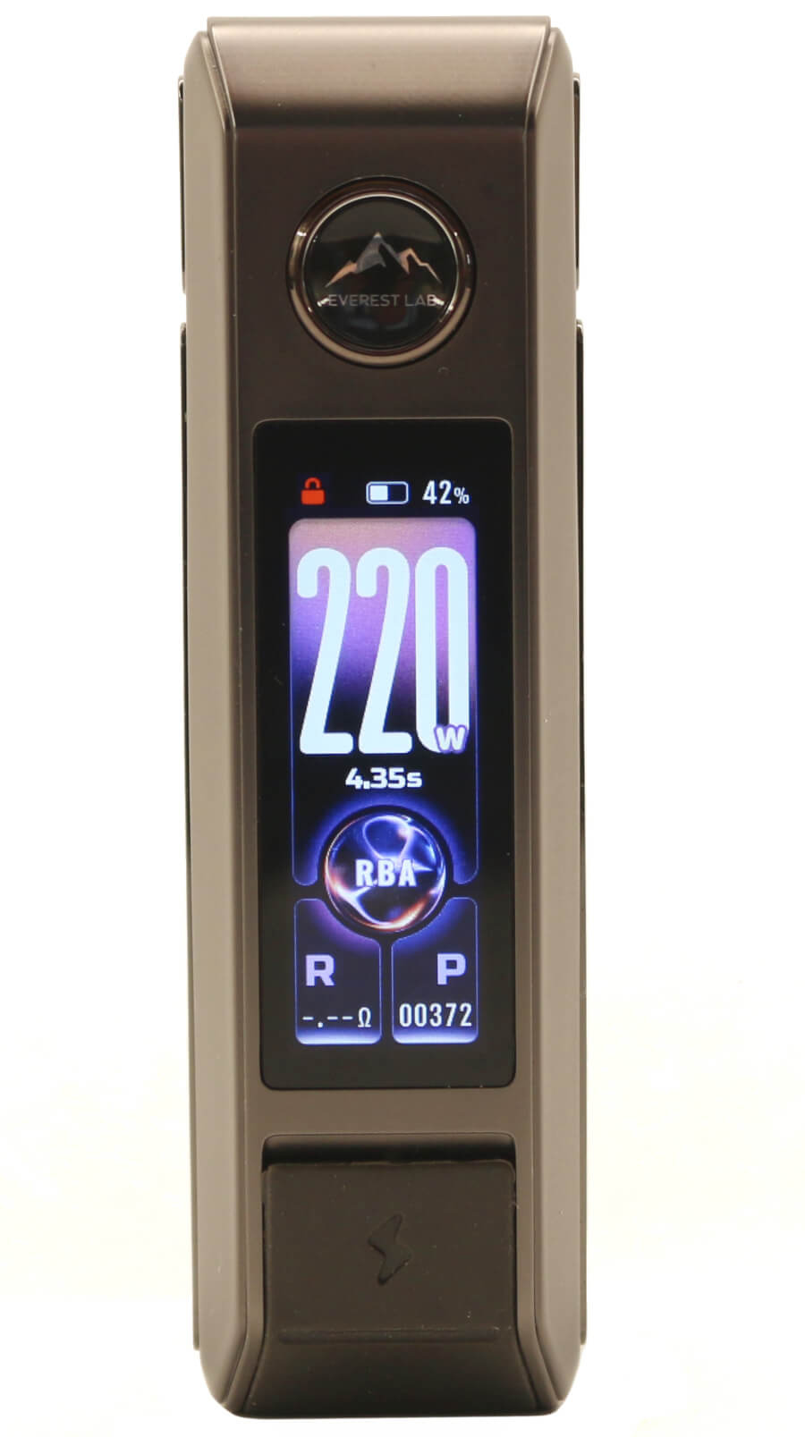 The only other markings on the DRAG 6 are on the fire button with "Everest Lab" below a mountain range image and a "+" and "-" marking on the right side alloy casing each end of the rotary wheel.