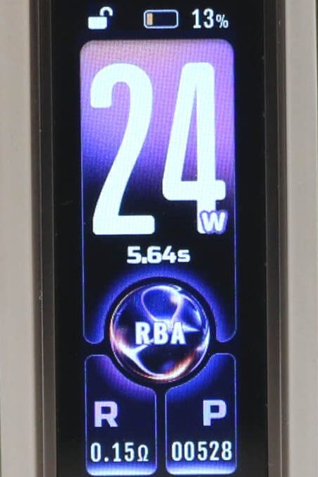 RBA mode is basically the standard wattage mode. The DRAG 6 will operate between 5 W all the way up to 220 W in 1 W increments. Once you reach the maximum value (220 W) the display will show "MAX POWER".
