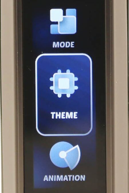 You can alter the layout of the Main display with 3 different theme screens. Select THEME from the Menu settings and it will bring up the 3 options. Use the rotary wheel to scroll through each one and as you do the display above highlights the different screens.