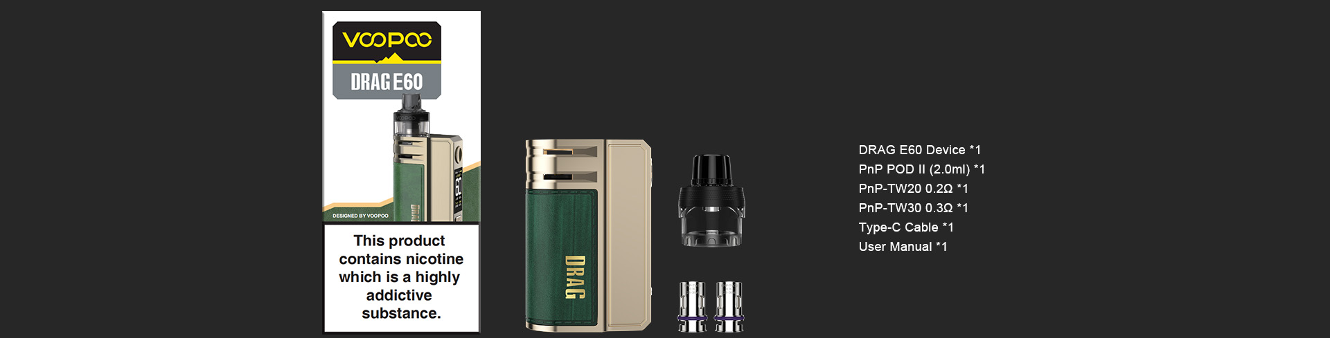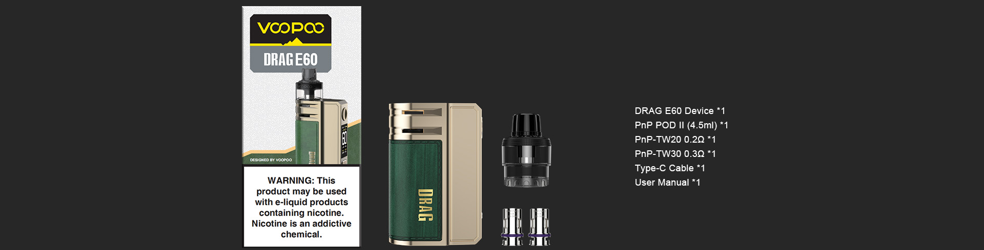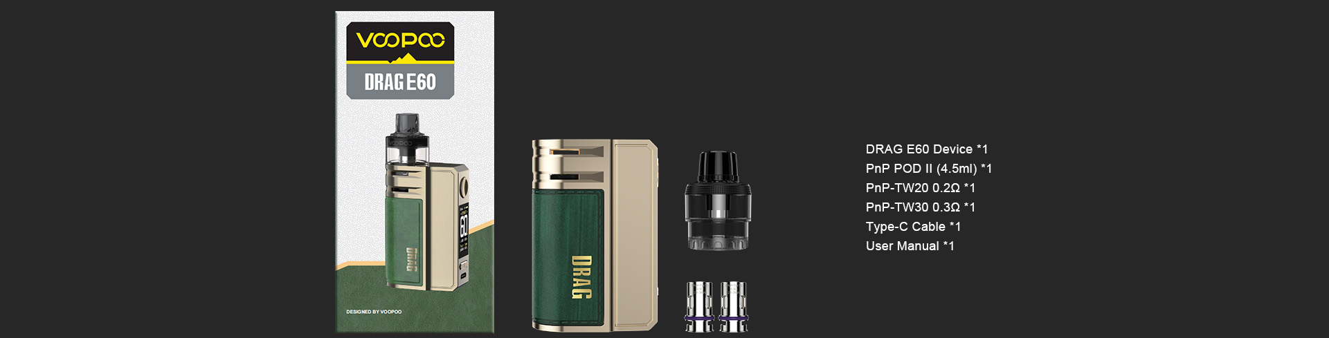 DRAG E60 оснащен двумя новыми испарителями линейки PnP 0,2 Ом и 0,3 Ом с технологией Dual In One.