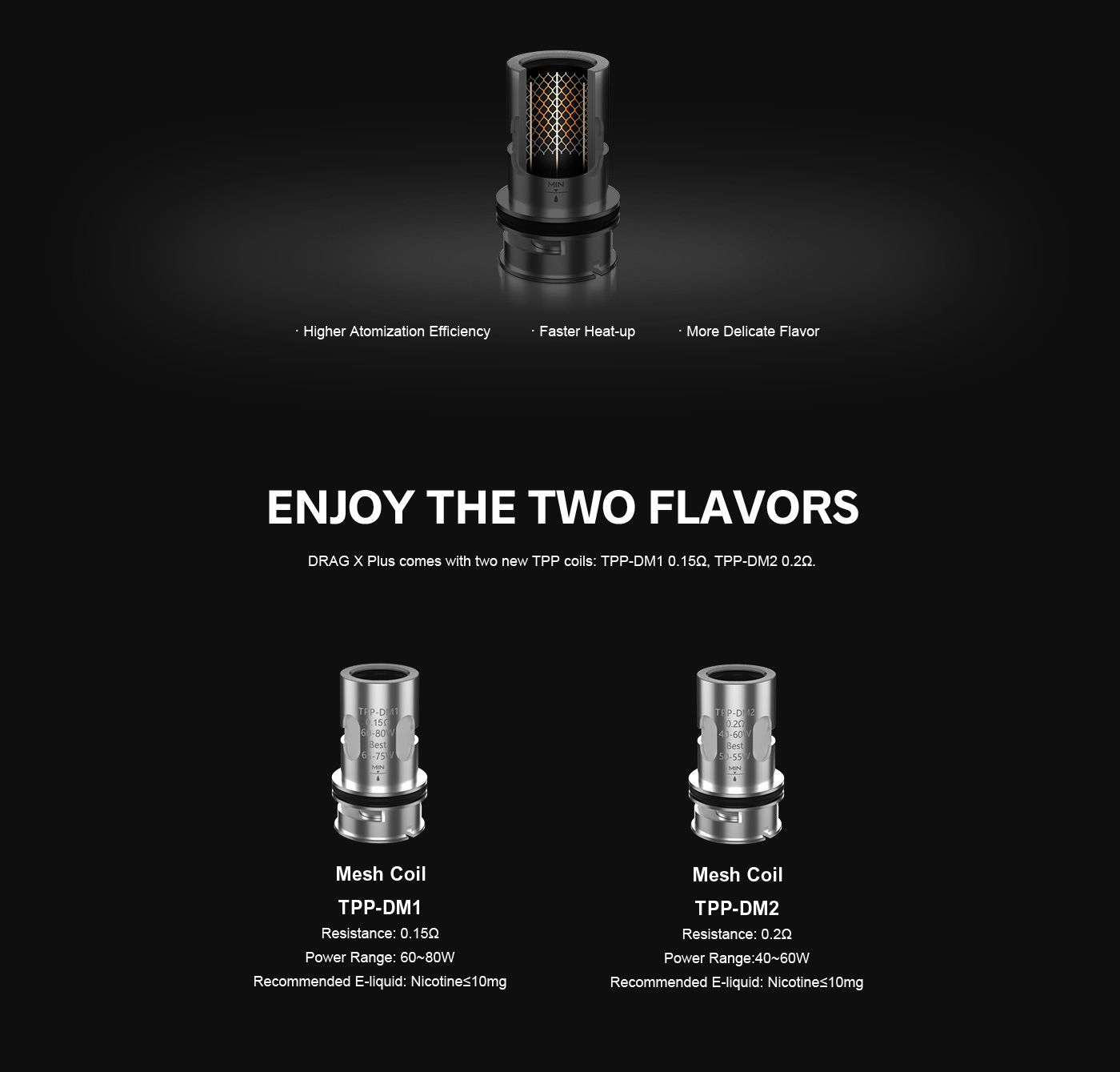 Drag X Plus Professional Edition เพิ่มแรงดันเอาต์พุตเป็น 8.5V ในขณะที่ยังคงระเบิดระดับสูงของ Drag X Plusในขณะเดียวกันก็ปรับปรุงความละเอียดของของเหลวอย่างมากและทำให้รสชาติโดดเด่นยิ่งขึ้น