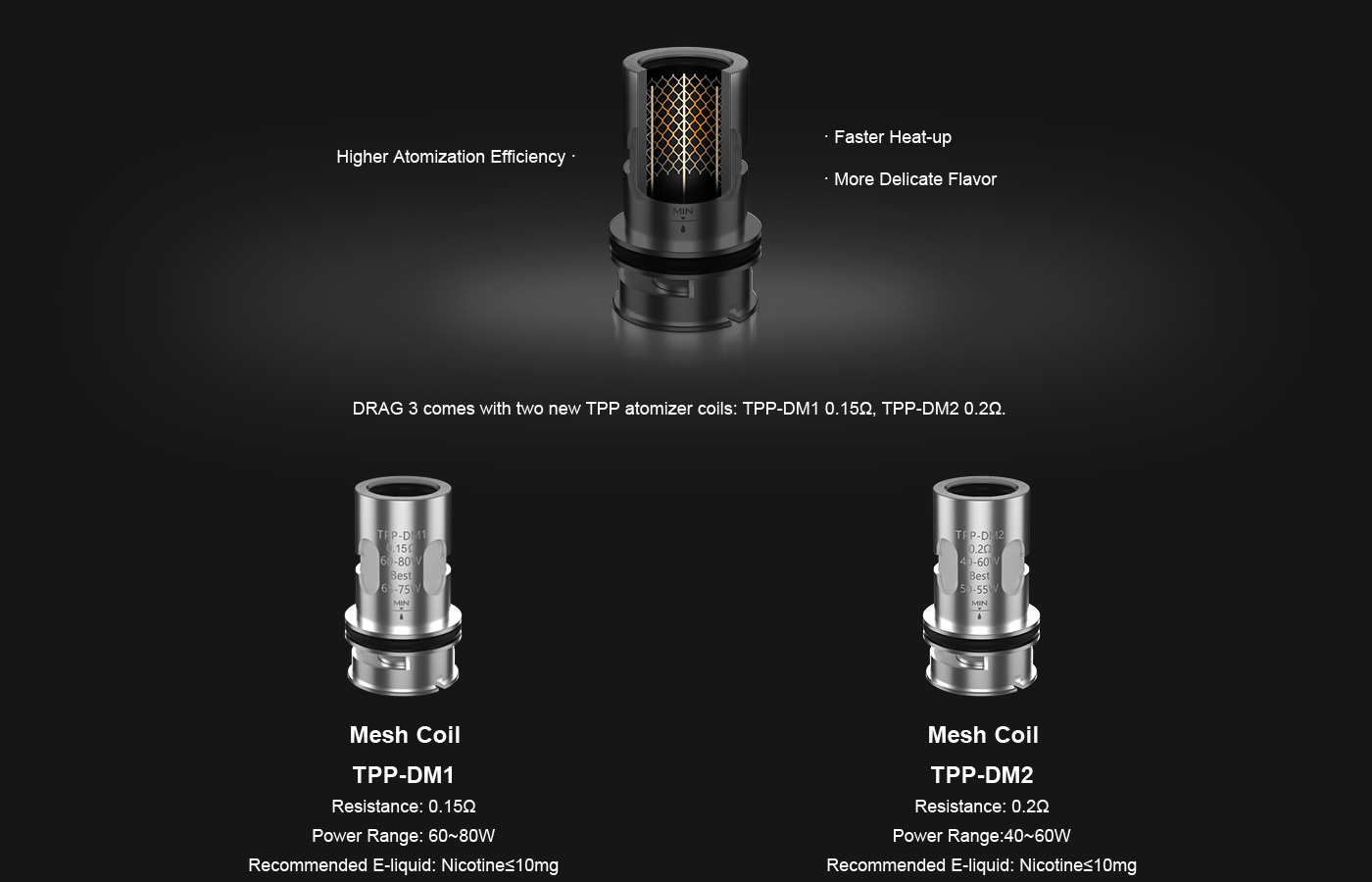 Các cuộn dây TPP Series sử dụng công nghệ mới được cấp bằng sáng chế của VOOPOO, không chỉ làm tăng diện tích nguyên tử hóa bên trong các cuộn dây mà còn cải thiện tốc độ gia nhiệt.Hiệu suất và tốc độ hợp lực để trải nghiệm hương vị mạnh mẽ hơn bao giờ hết.